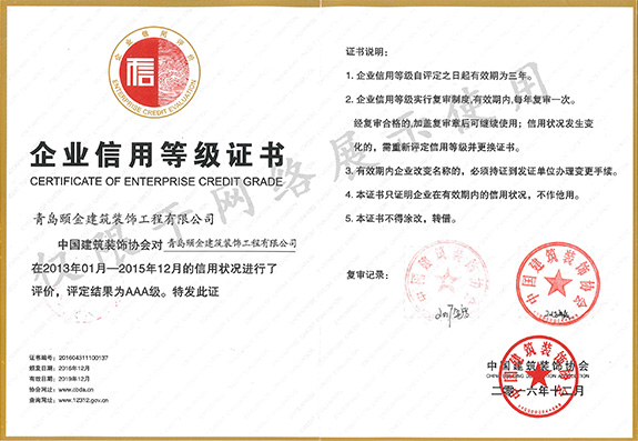 全國AAA級(jí)信用評(píng)價(jià)企業(yè)